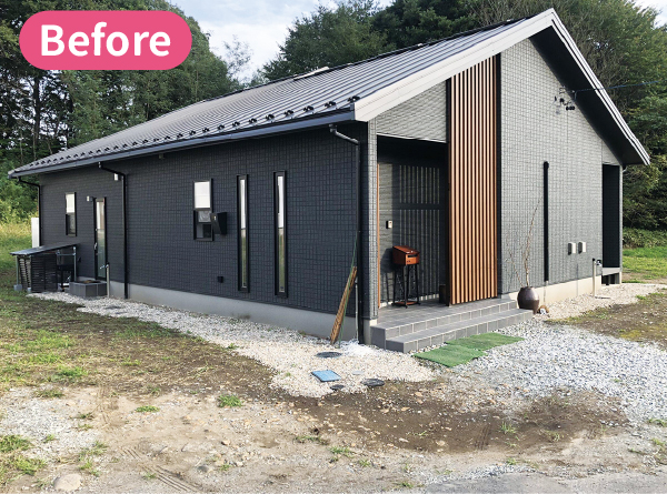 施工前は、土がむき出しになっている状態でした。特に冬季は凍み(しみ)ぬかるんで、愛車が汚れてしまうことがたびたびでした。