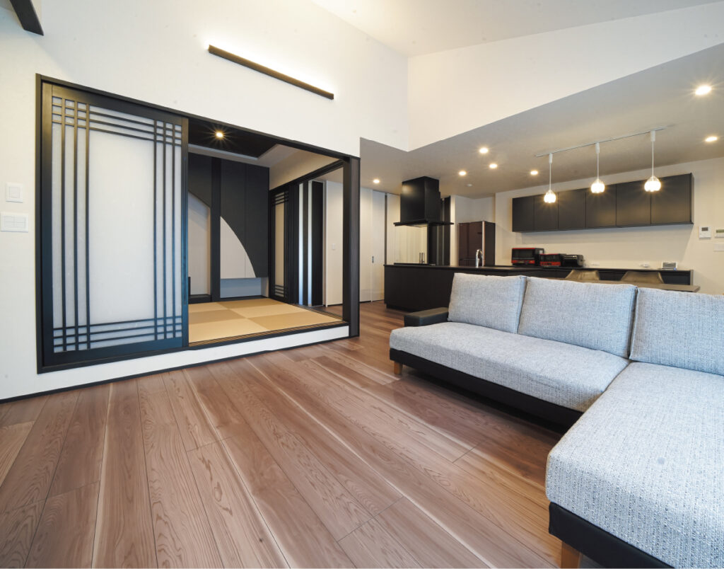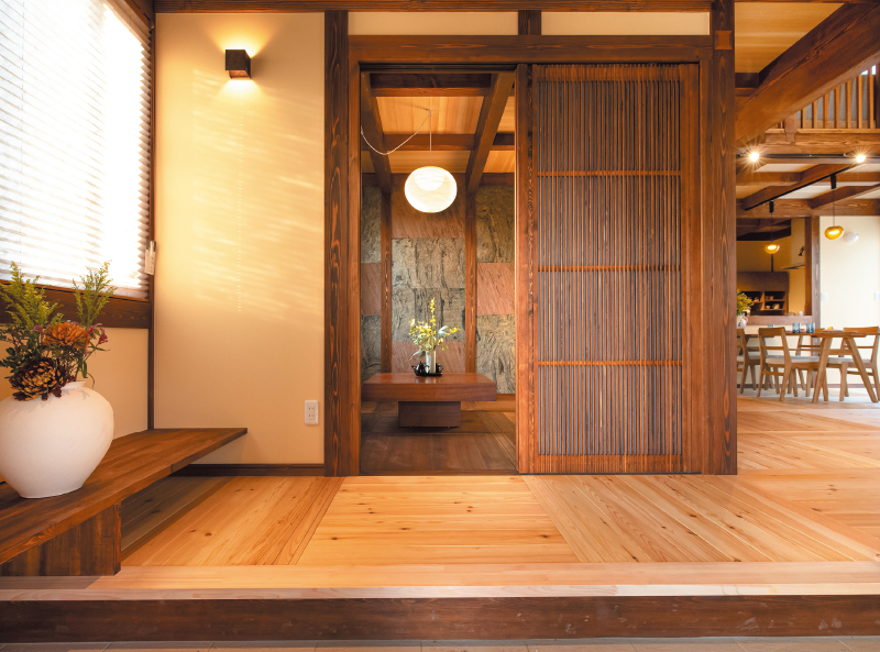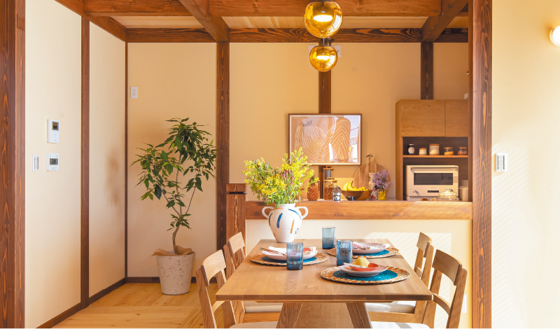 どこか懐かしさを感じさせながら、洗練されたデザインで心地よさを演出。梁と柱の美しさを生かした空間が、暮らす人に安らぎをもたらしてくれる。