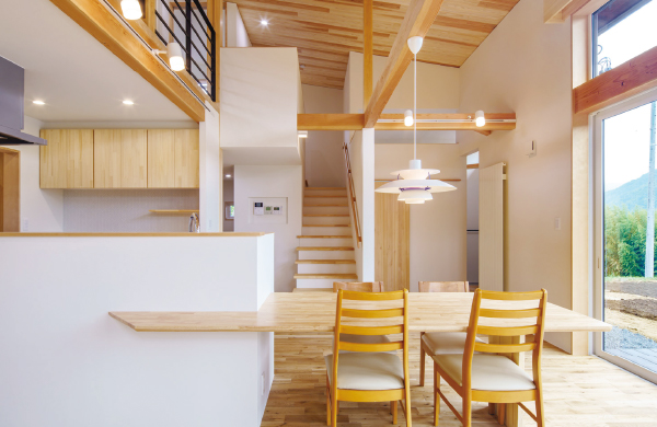 国道沿いという条件ながら平穏な暮らしをかなえた。この木造約100㎡のA邸は、敷地を最大限に生かした配置計画が特筆すべき個性。無機質な四角形の定型を覆し、騒音から遠ざける創意工夫を施した、環境に呼応した空間デザインが際立つ。断熱性能は現行基準で最高等級の7を取得し、UA値は0.23を達成。季節を問わないG3グレードの快適さは、冷暖房費の大きな削減にもつながる。創業から20年にわたり施主のこだわりに寄り添ってきた同社は今年、建設業に登録。設計・施工・管理の一社請負が可能になった。