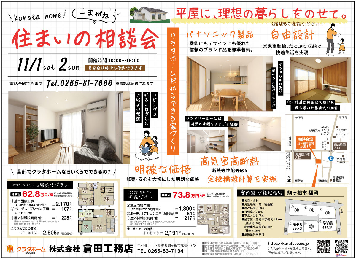 駒ヶ根平屋モデルハウス 住まいの相談会【倉田工務店】