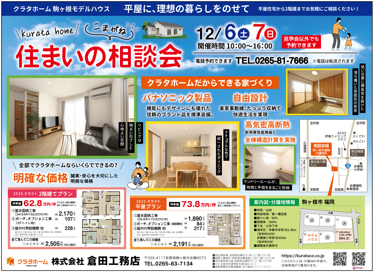 駒ヶ根平屋モデルハウスにて住まいの相談会を開催