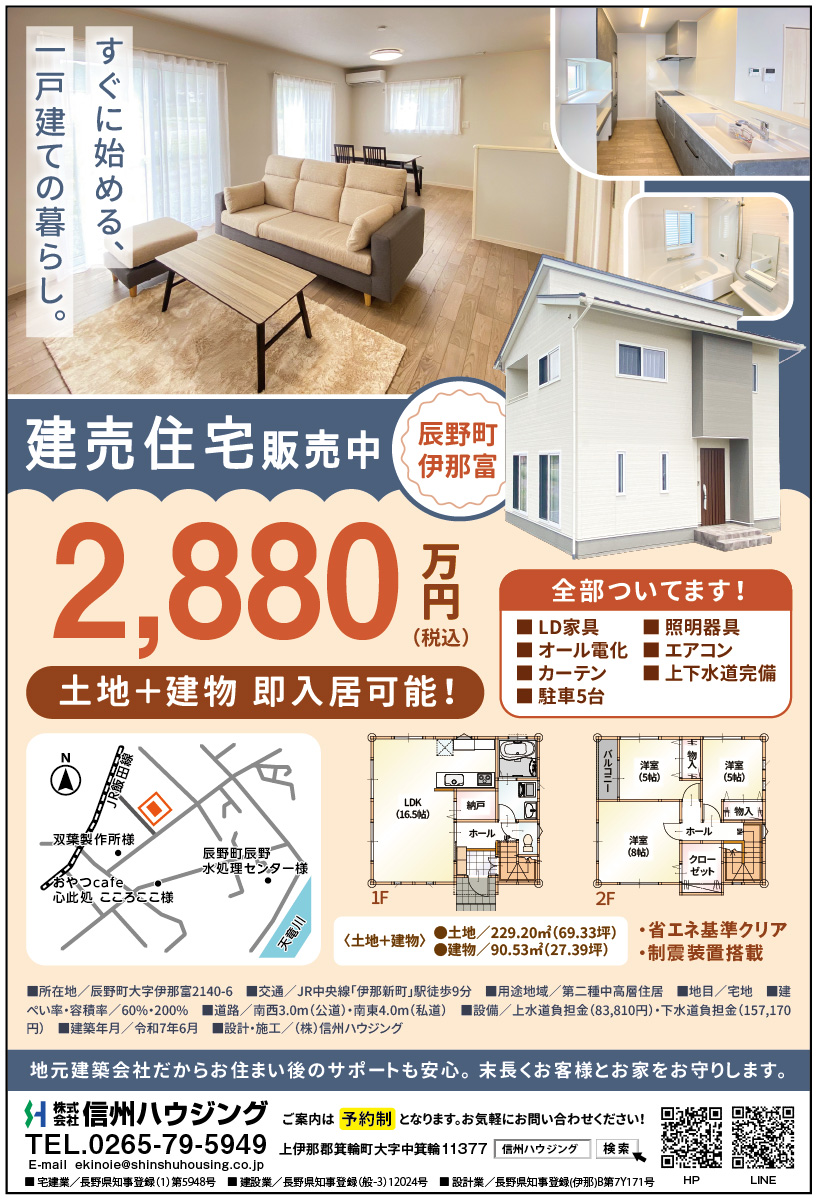 | イベント名 | 「辰野町伊那富 建売住宅販売中」 土地+建物 即入居可能!(見学予約受付中) |