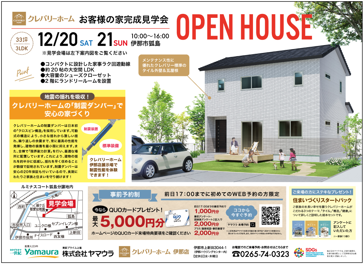 | イベント名 | 「お客様の家 完成見学会」 メンテナンス性に優れたクレバリー標準のタイル外壁&瓦屋根 |
